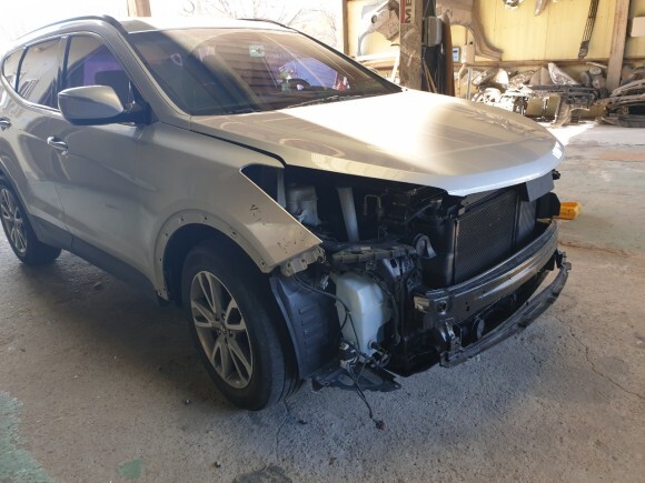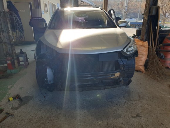 사고차형들 현대 싼타페DM 조수석 휀다 앞범퍼 몰딩 라이트 복원교체 및 판금도색건 (전국 자동차 부품 연합)